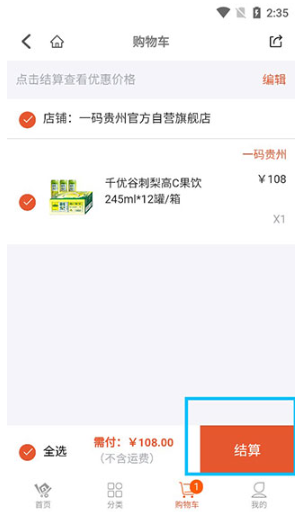 5、加入购物车之后,点击结算。