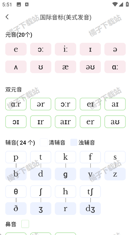 3、在基础手册界面,我们还可以看到标准的英式发音规范以及美式发音规范。
