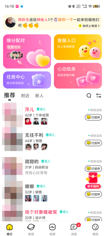 4、动态聊天: 在糖芯通过动态聊天功能,用户可以与其他用户进行实时互动,建立深厚的友谊和情感联系。