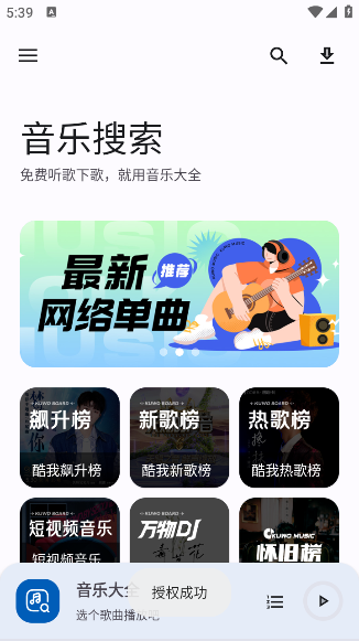 音乐大全是款专业的免费音乐播放器,曲库中的歌曲资源更新速度快,各种题材的音乐可以满足大家不同听歌需求,一键搜索关键字就能快速找到喜欢的音乐,安全好用,欢迎喜欢的朋友下载!