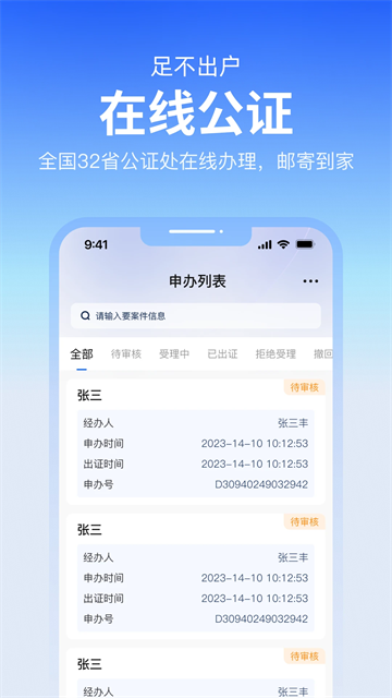 3、在线公证申办:通过网页、APP、微信等多入口提交材料,实现“最多跑一次”领取公证书,涉外公证最快72小时出证。
