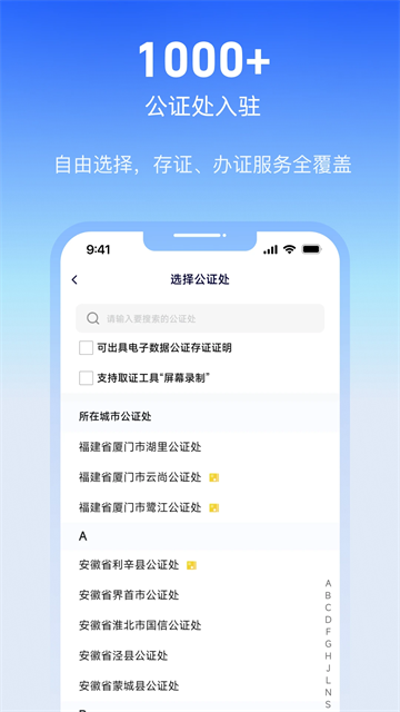 公证云app下载安装手机版是一款办公软件,软件内为用户提供在线公证、知识产权保护等功能,满足用户对公证处的需求,同时软件为用户提供线上办理业务,极大方便了用户,更多惊喜等你发现,这么好用的软件,你还在等什么?快快下载加入我们吧!