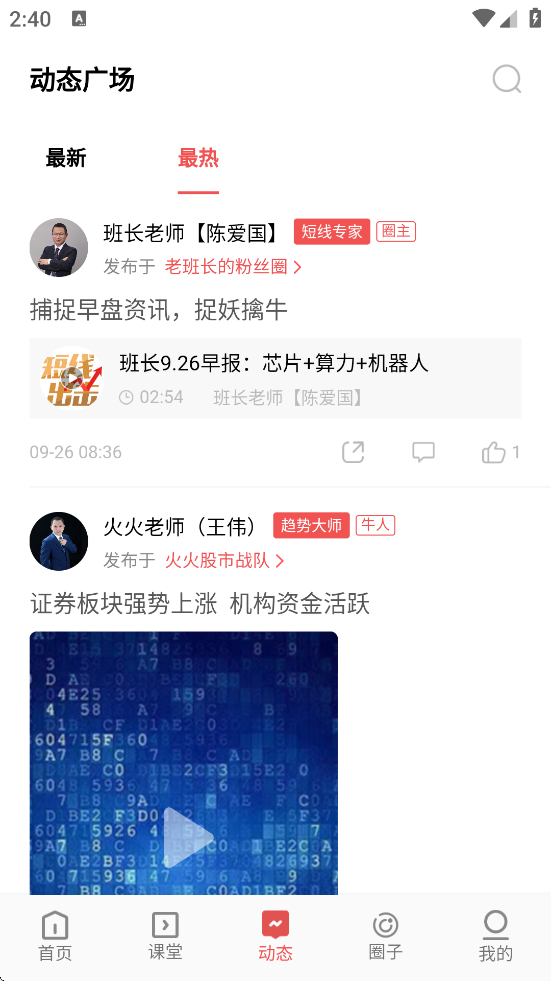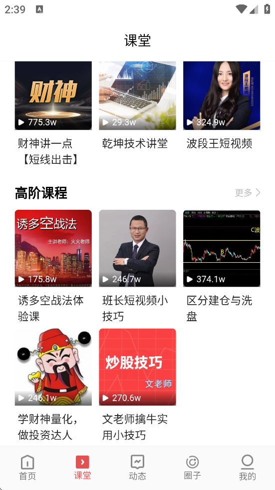 课程学习:在“课堂”模块可观看视频/音频课程,涵盖股票、期货等投资知识。