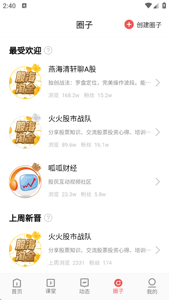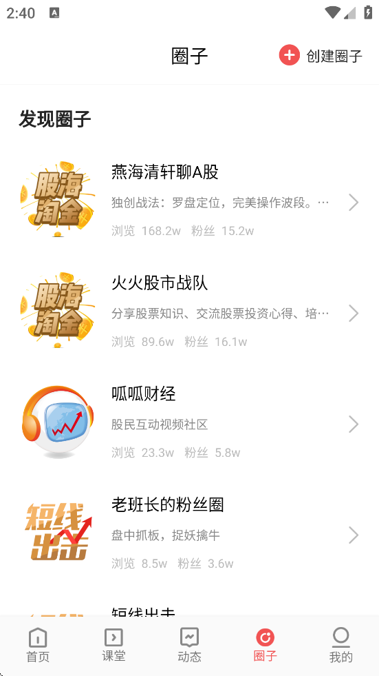 社区交流:通过“圈子”加入股友讨论组,或创建自己的投资圈子。
