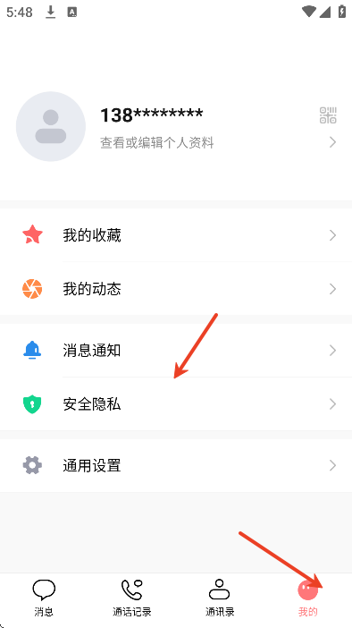 2、点击下方的我的,选择安全隐私