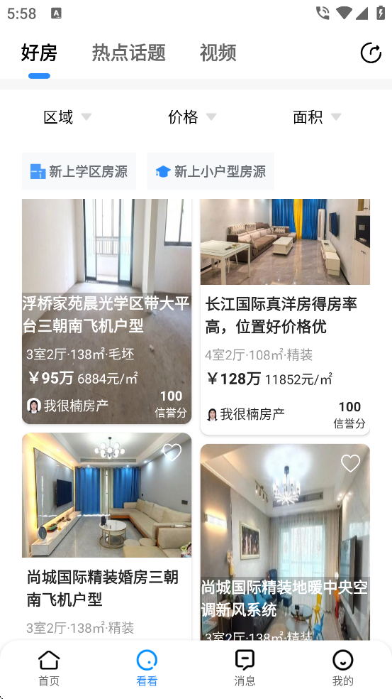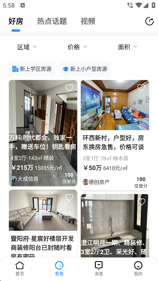 视频看房:部分房源提供专业带看视频,可360度查看样板间。
