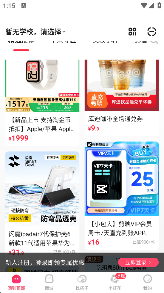 天猫校园是一款专为大学生设计的智能化校园服务平台,整合零售、生活服务及学生专属权益,覆盖500多所高校。其核心功能包括校园门店优惠(如学生专享价、消费攒花兑换权益)、便捷生活服务(共享出行、洗衣烘干)及实时导航等实用工具。通过“基础功能免费+增值服务付费”模式,用户可免费使用核心服务,同时通过参与活动(如开学季集卡抽奖)或购买高价值商品(如数码产品)获得个性化体验。平台持续更新版本(如2025年9月v4.1.4),结合年轻化营销(如猫头IP校园行)与数字生态布局,打造“购物-学习-生活”一体化校园新体验。