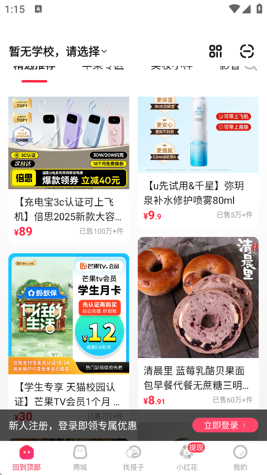 3、提供学生专属品牌喵莘莘及百大品牌联名商品,涵盖数码、美妆、日用品等品类。