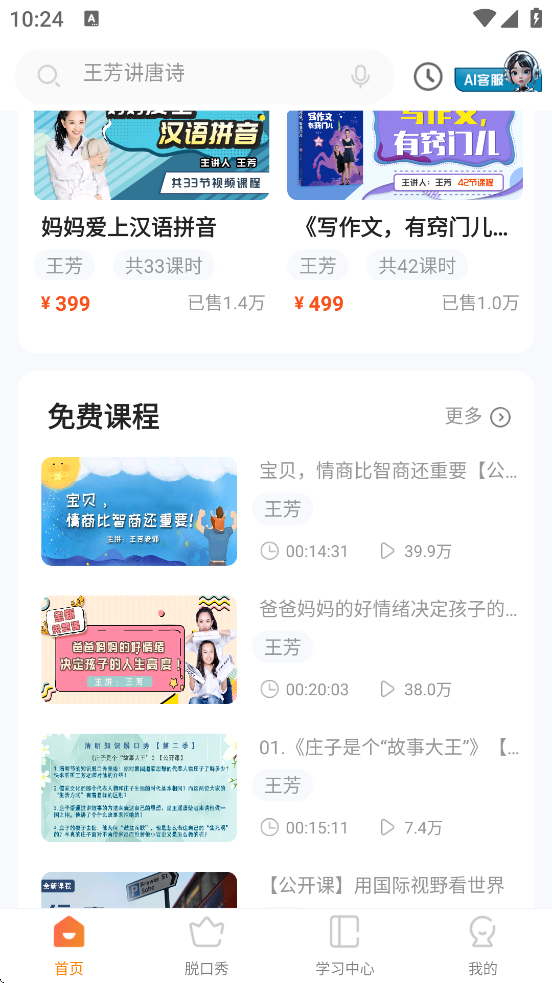 1、独创知识脱口秀音频课程,覆盖大语文、数学、历史等学科,支持离线播放与个性化界面定制。