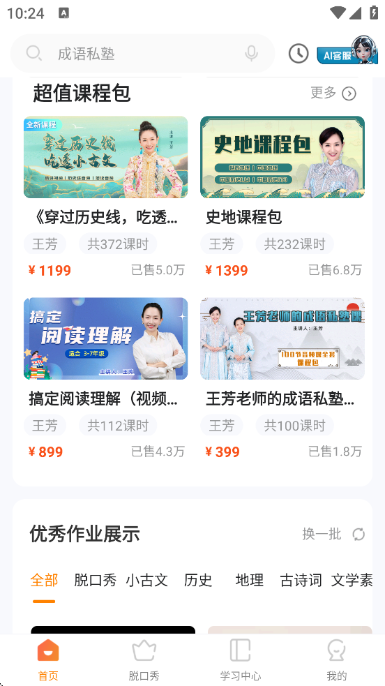 好芳法课堂的核心优势在于其创新的教学方法,由王芳老师独创的“三步阅读法”“五问理解法”将抽象知识转化为孩子易懂的形式,结合脱口秀、快板、动画等趣味形式显著提升学习兴趣;课程体系全面覆盖大语文、历史、地理、情商培养等领域,注重思维与语言能力训练,线上提供知识脱口秀、唐诗课等多样化内容,并曾组织线下游学活动(2020年后暂停),同时邀请行业专家合作开发快板课、自然拼读课等,形成亲子共学模式。用户反馈显示,孩子学习主动性、作文能力及数学解题思路均有明显进步,配套资料齐全的设计更被家长评价为“解放了辅导压力”。尽管课程主要面向小学生且购买流程稍显繁琐,但其趣味性与系统性仍使其成为提升孩子综合素养的优质选择,尤其适合对传统教学方式兴趣不足的孩子尝试。