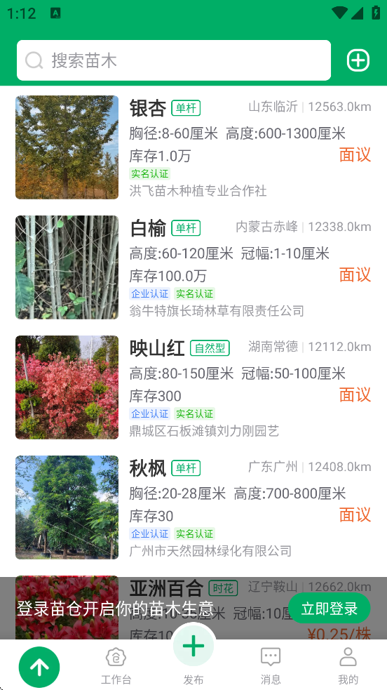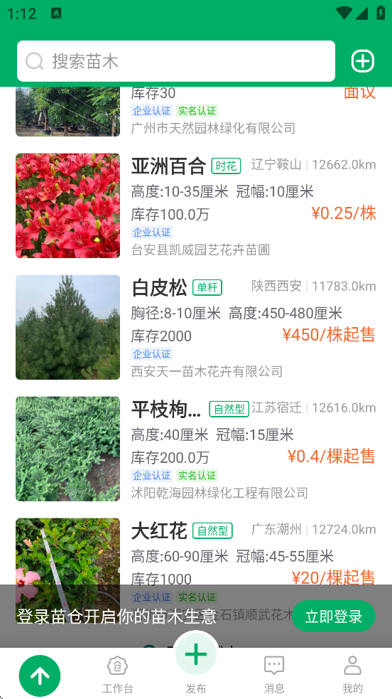3、专为苗木行业设计,功能模块(如苗木求购、报价系统)贴合园林绿化行业实际交易场景。