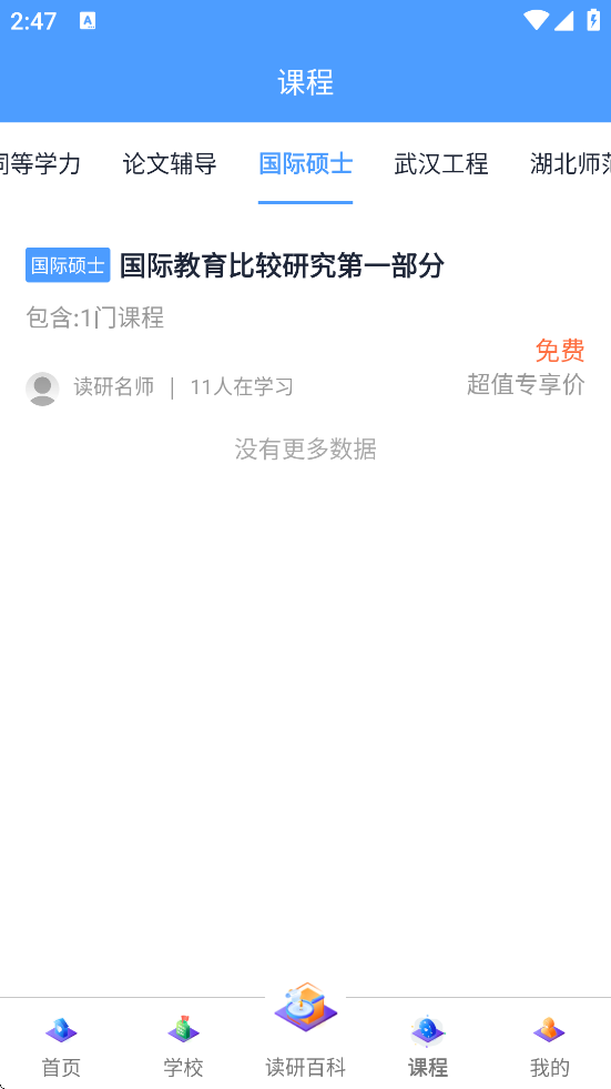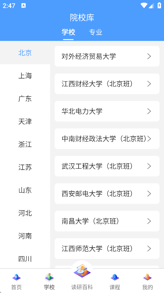 通过“院校库”对比985/211院校招生条件,筛选学费、授课方式等。