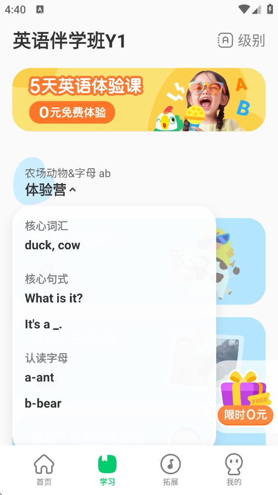 1、分龄分级课程体系:覆盖0-8岁儿童,分为早教课(种子/萌芽路线)和启蒙课(L0-L6),内容从儿歌磨耳朵到自然拼读、自主阅读逐步进阶。