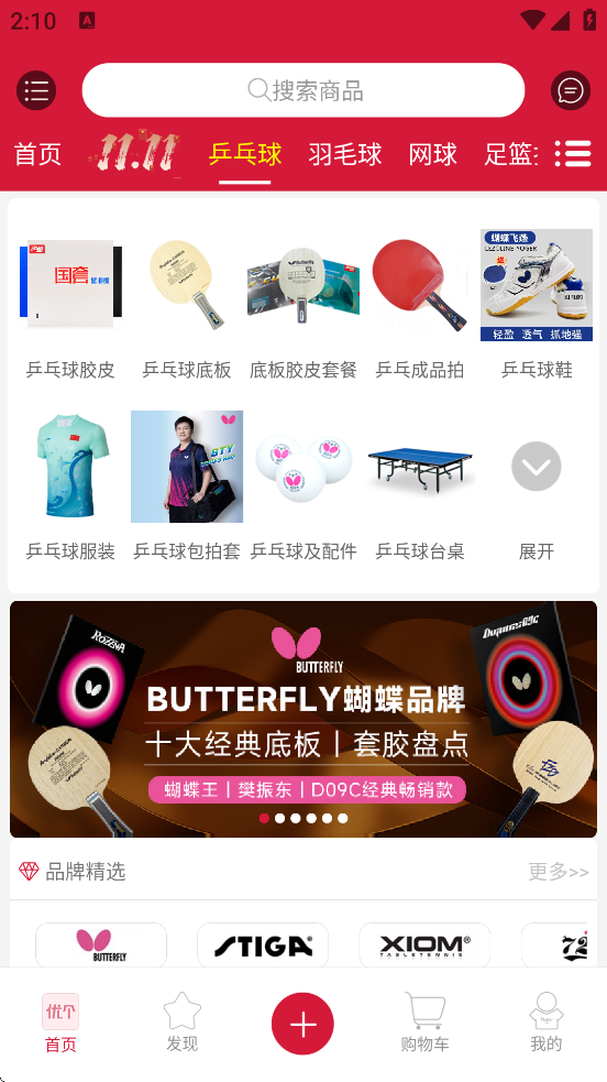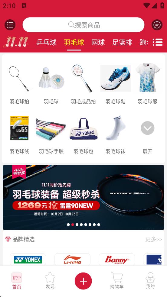 1、全品类运动装备:覆盖羽毛球、乒乓球、网球等19大类商品,与李宁、红双喜等品牌直合作,提供超万款正品装备。