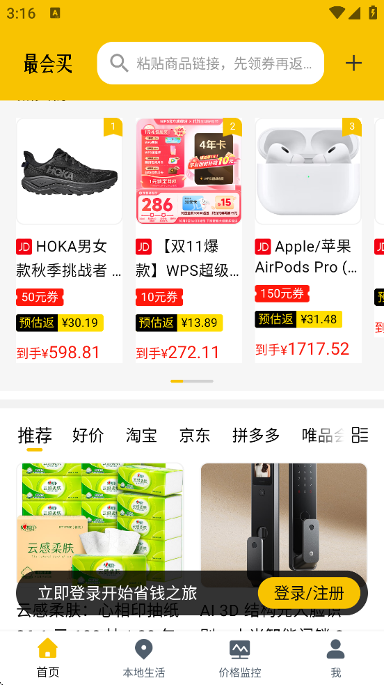 最会买软件最新版本下载安装是一款生活实用购物软件,软件内为用户提供大量的购物返利福利,用户可以通过软件获取各大购物平台的优惠券,同时软件内为用户提供优惠活动,如此好用的软件,你还等什么?感兴趣的小伙伴快快下载前来体验吧!