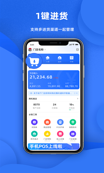 用户可以通过这款软件掌握自己店铺的经营状况,即时处理重要的变动,还能够有效减少人工成本,这里还有智能客服为你提供帮助,分析经营方案,进销存管理,客户管理等,让你的店铺红红火火。