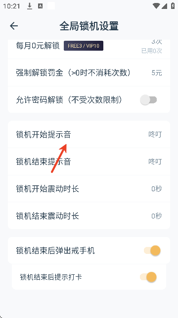 4、还可以设置锁机提示音,这样就能让您获得准确的提醒。