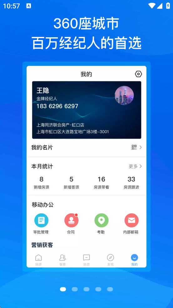 3、移动办公工具:集成合同管理、贷款计算、考勤打卡、IM微聊等功能,实现全流程移动化办公。