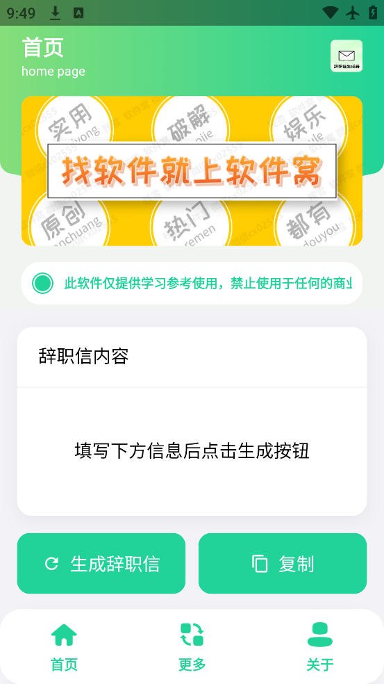 辞职信生成器下载软件官方版是一个非常好用的文章生成器,在这里可以帮助大家写好辞职信,不需要花费太多的精力,就能写出一篇看起来很不错的辞职信。对于不想要再继续这份工作,但是有不知道怎么提辞职的用户来说,这个工具可以帮你的大忙。