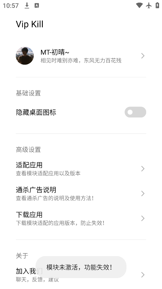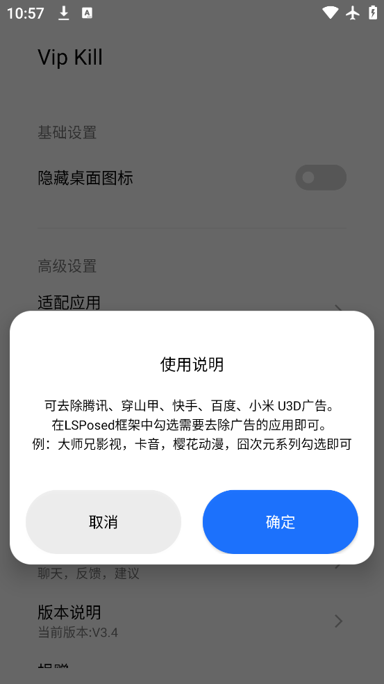 VipKill最新版下载支持多款软件会员解锁的一个应用,Vip Kill是个免费的工具,是个基于LSPosed框架打造的版本,用户下载软件后就可以直接使用,包含了很多好用实用的应用会员解锁版,软件功能很强大请低调使用。