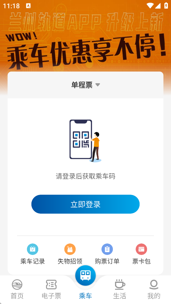 提前下载或更新至最新版“兰州轨道APP”,进入首页后点击“我的”或“乘车”完成登录操作。