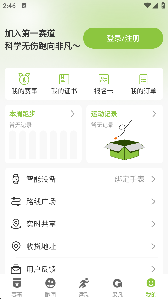 通过“我的-线下赛”查询或报名马拉松、越野赛等,获取电子参赛号码及完赛证书。