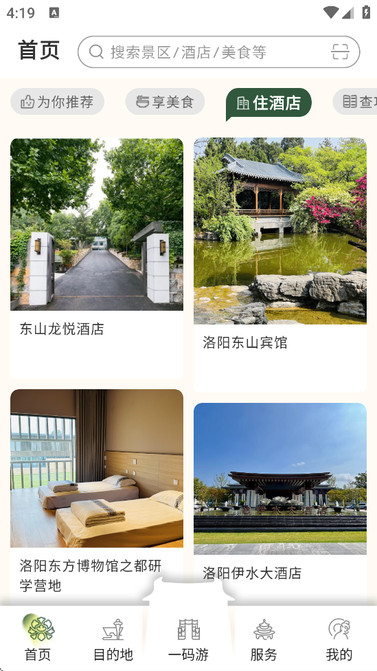 享游洛阳软件最新版本下载安装是一款旅游出行软件,软件内为用户提供详细的旅游计划,用户可以根据自己的旅游路线来进行居住选择,更多惊喜等你来发现,这么好用的软件,你还在等什么?快快下载加入我们吧!