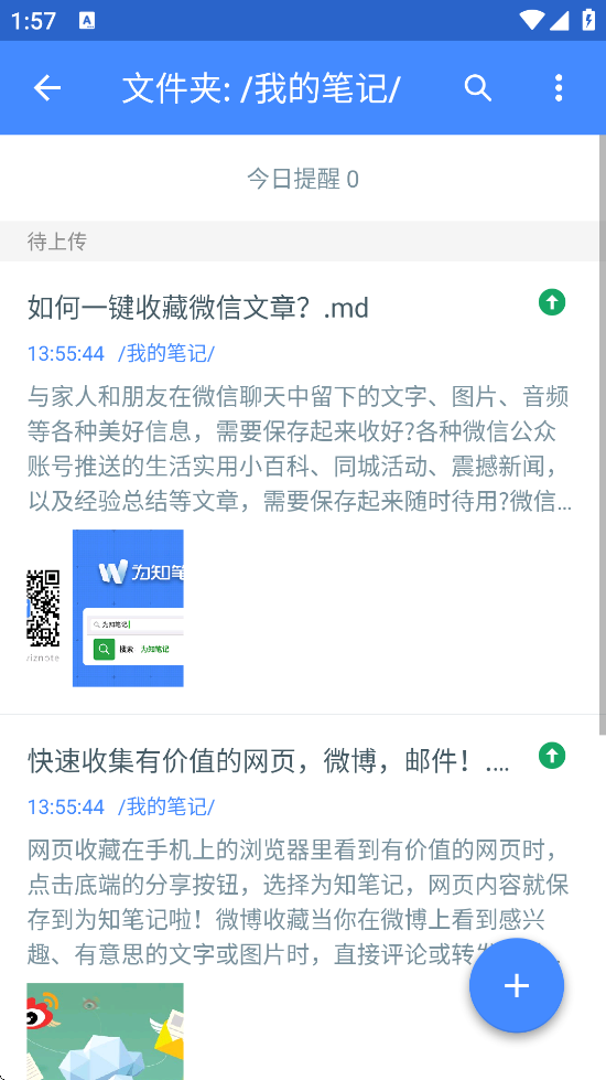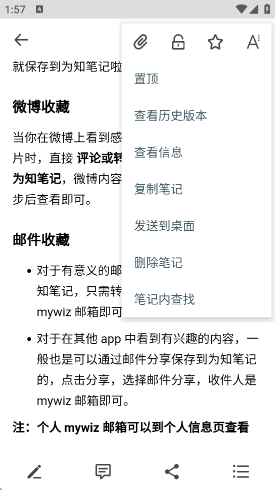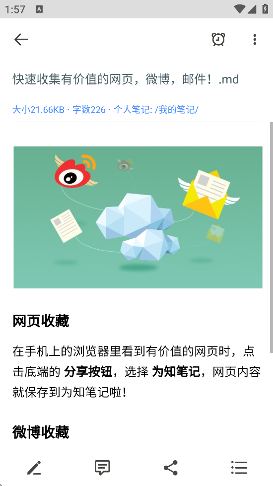 快捷收藏:可直接保存网页、微信、微博内容到笔记。