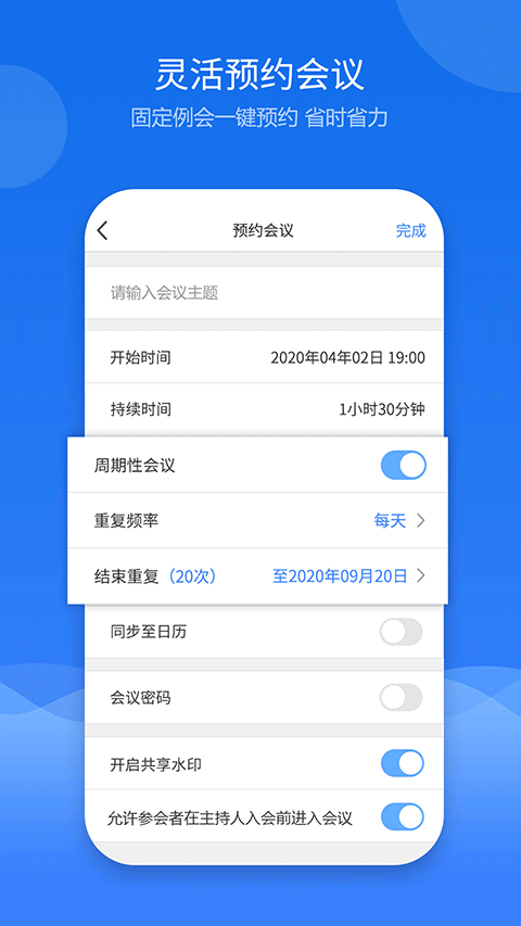 1、便捷性:无需注册,点击链接即可入会;支持一键预约、会议号快速加入。