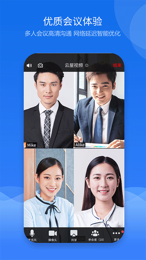 云屋视频会议app下载安装最新版本是一款商务办公软件,软件内为用户提供视频会议功能,用户一键即可预约灵活会议,同时软件内为用户提供高清沟通功能,更多惊喜等你来发现,这么好用的软件,你还在等什么?快快下载加入我们吧!
