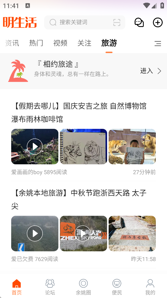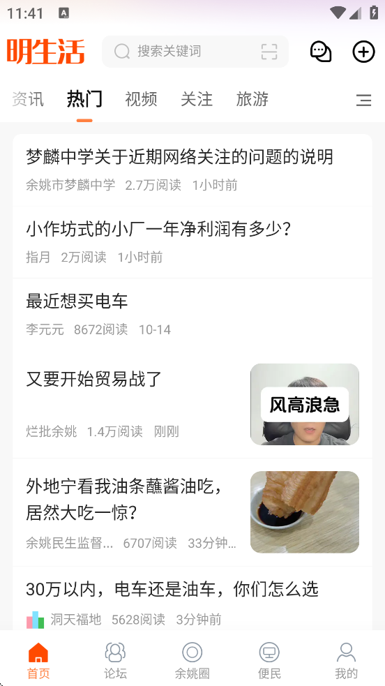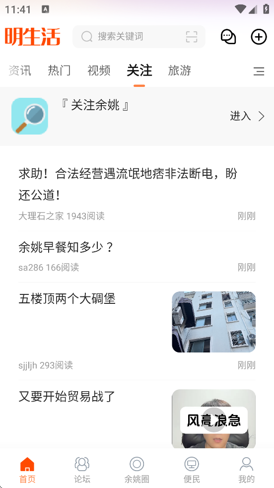 进入“社区”板块查看余姚民生新闻、爆料及生活资讯,支持关键词搜索快速定位内容。
