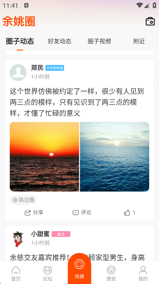 3、垂直社交:聚焦余姚本地用户,通过兴趣圈子连接同城爱好者,强化地域性社交属性。