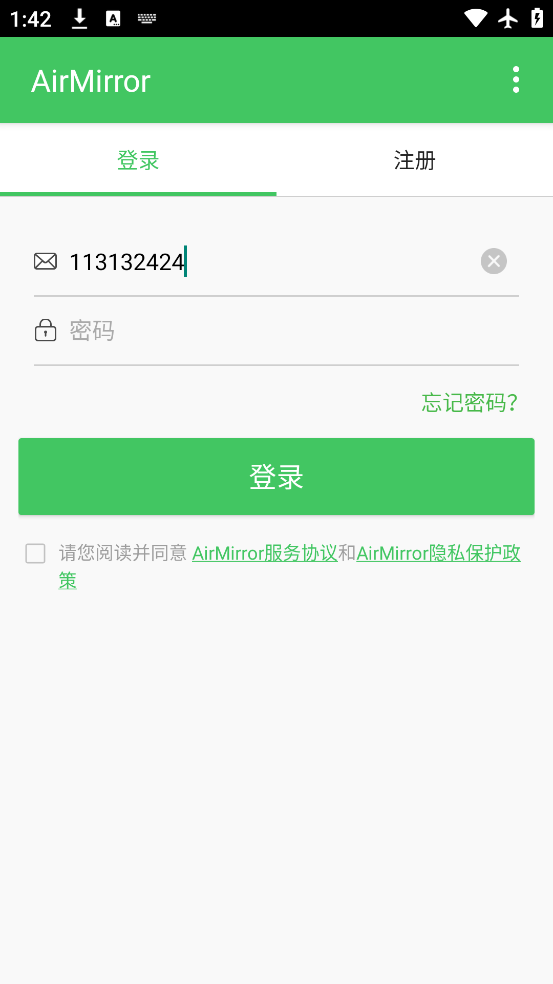 3、在AirMirror和AirDroid应用中登录同一个AirDrod帐号(如何注册AirDroid帐号?)