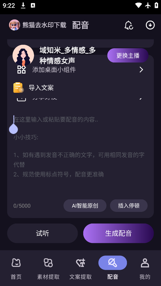 3、关键是这个软件现在还可以直接导入链接中的解析出来的文案进行免费配音。
