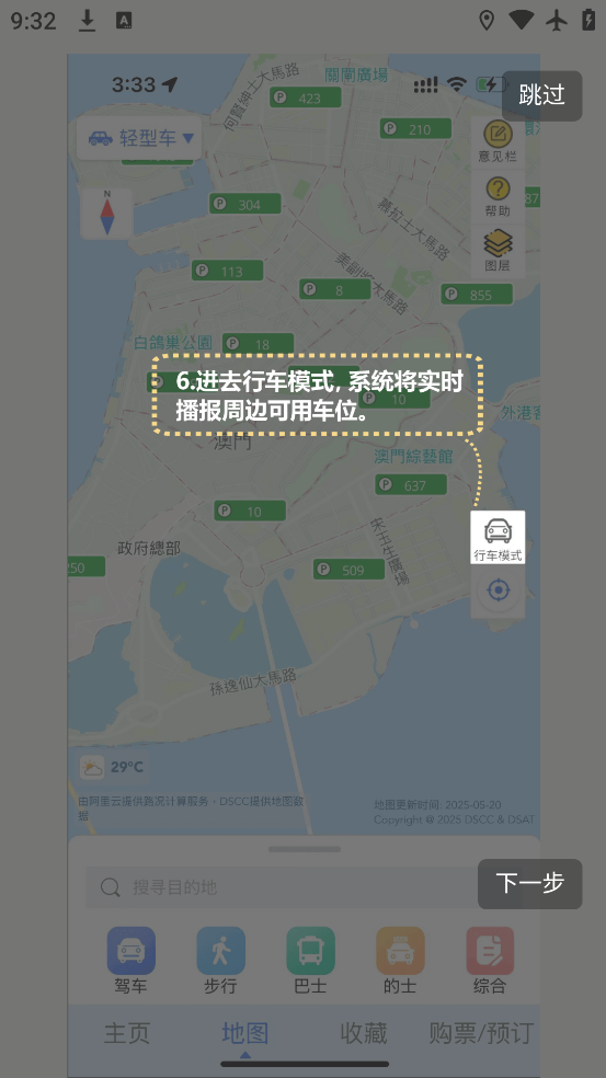 2、提供公共停车场及地感咪表泊车空位等实时资讯,优化驾驶体验。