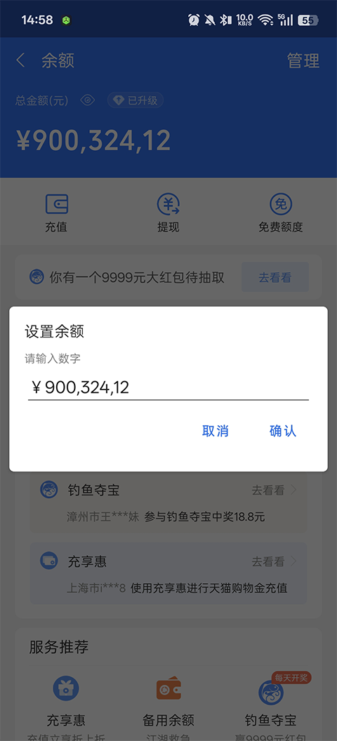3、用户输入账号与金额,软件会自动生成钱余额截图,想写多少有自己决定,实乃装逼利器。