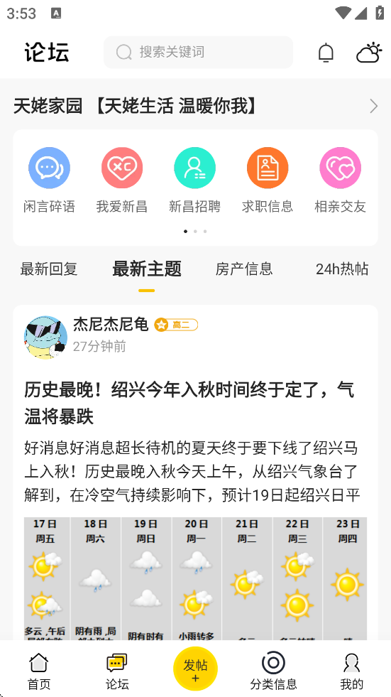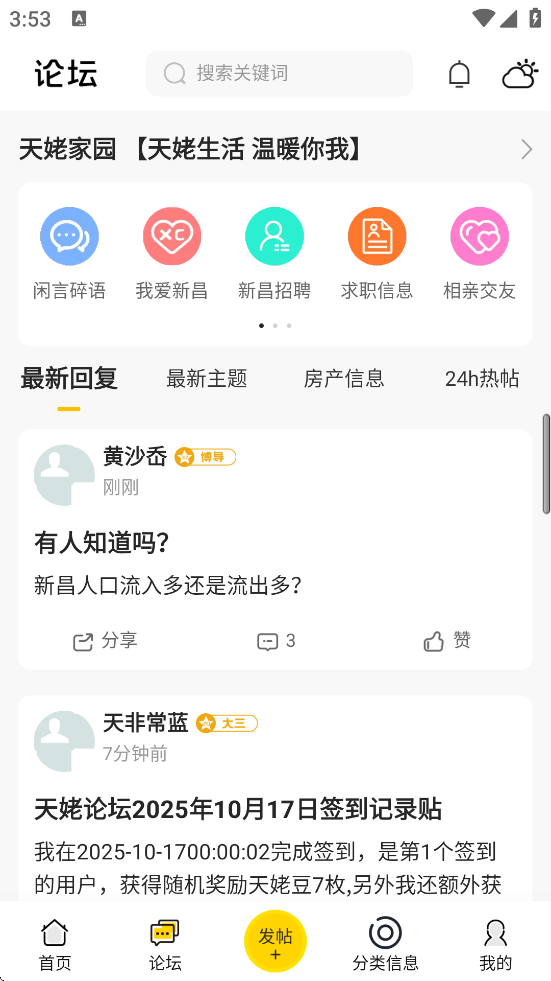 2、本地化内容:专注新昌民生,覆盖小城大事、文化娱乐及商业资讯,用户可自建话题或加入兴趣圈子(如吃货、摄影等)。