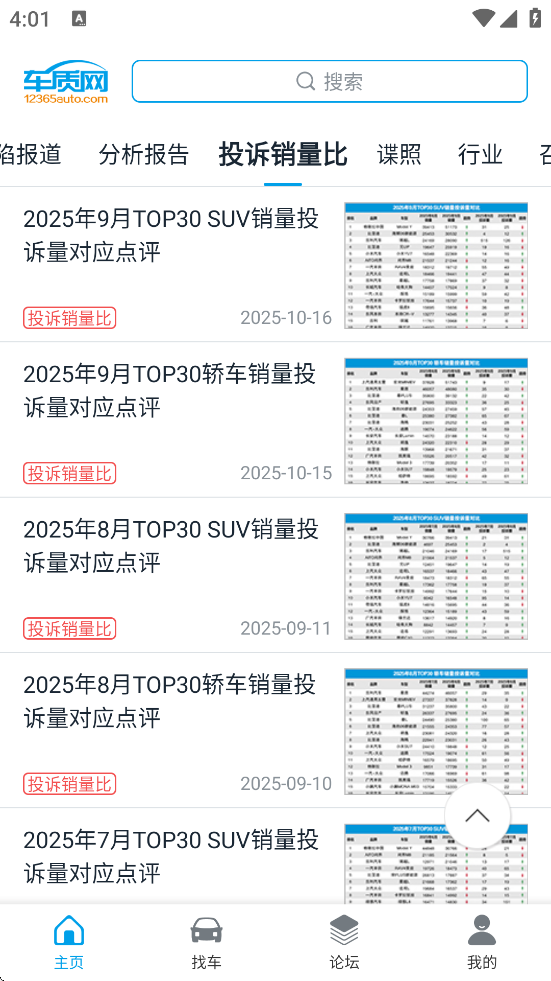 1、车型质量分析:汇总真实车主投诉案例,生成质量分析报告、投诉排行榜,帮助消费者避坑。
