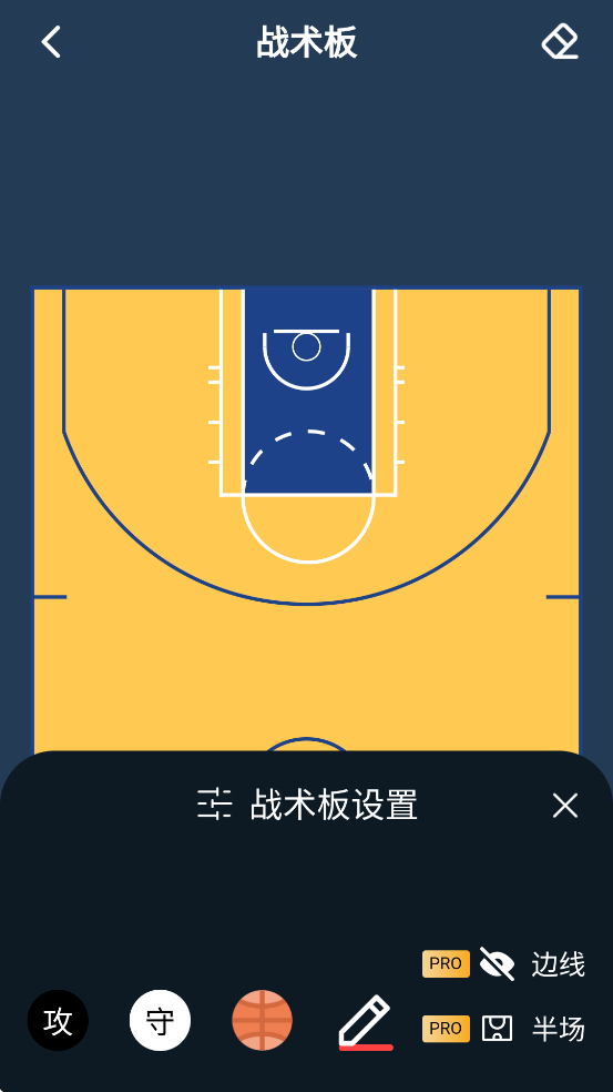 自由战术板:比赛时可直接在电子画板上快速绘制战术,替代传统手绘。