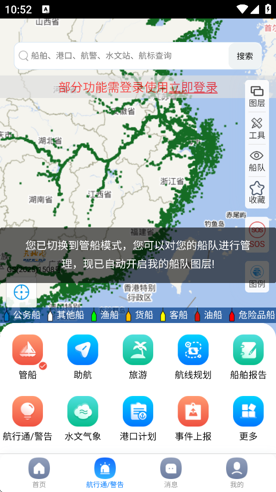启航者APP(iSailing)是交通运输部南海航海保障中心推出的官方公益性船舶导航软件,全程免费且遵循国际E航海标准。其核心优势在于整合智能航线规划、实时水文气象(如风速、潮位)、航行规则指引及海上安全信息,误差10米内的精准定位系统可辅助制定最优航路。界面简洁易用,支持一键查询船舶状态、快速搜索周边生活服务场所,并具备台风预警和SOS紧急求救功能,7×24小时职守保障航行安全。无论是个人航海者还是船队管理,都能通过“助航/管船”双模式实现高效导航与动态监控。