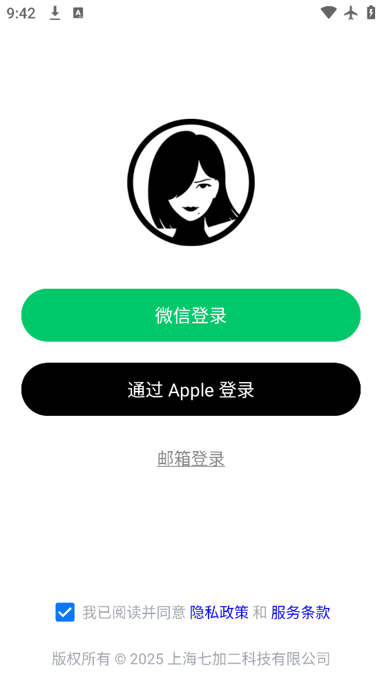 1、打开 App 后进入登录页,可选择「微信登录」「Apple 登录」或「邮箱登录」任一方式快速进入主页。