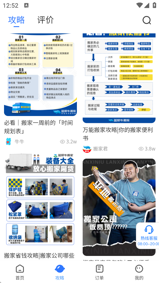 蓝犀牛搬家软件是国内领先的搬家服务平台,提供明码标价、专业搬运及日式搬家等多样化服务,用户可通过APP或小程序快速预约,享受透明收费和全程保障。 其特色包括免费上门估价、家具保护及跨城门到门服务,师傅团队经过严格培训,确保高效、安全搬运,用户评价普遍反映服务贴心、价格合理。 平台以“让搬家更轻松”为愿景,通过标准化流程和售后承诺,赢得千万用户信赖。