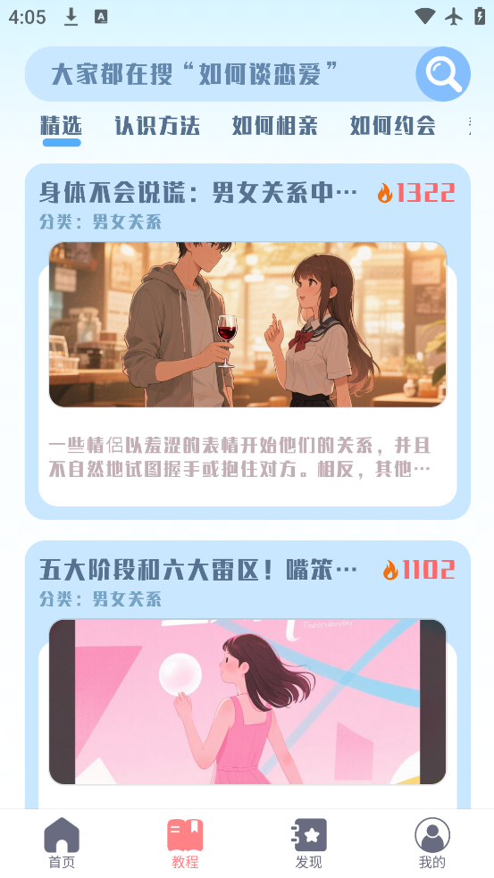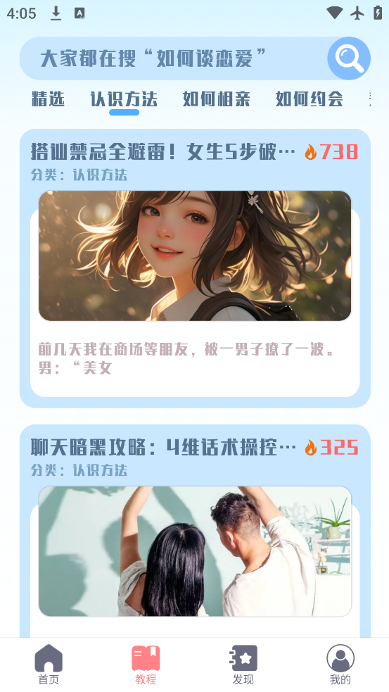 4、查看各样的恋爱实战案例,了解更多与恋爱相关的内容;