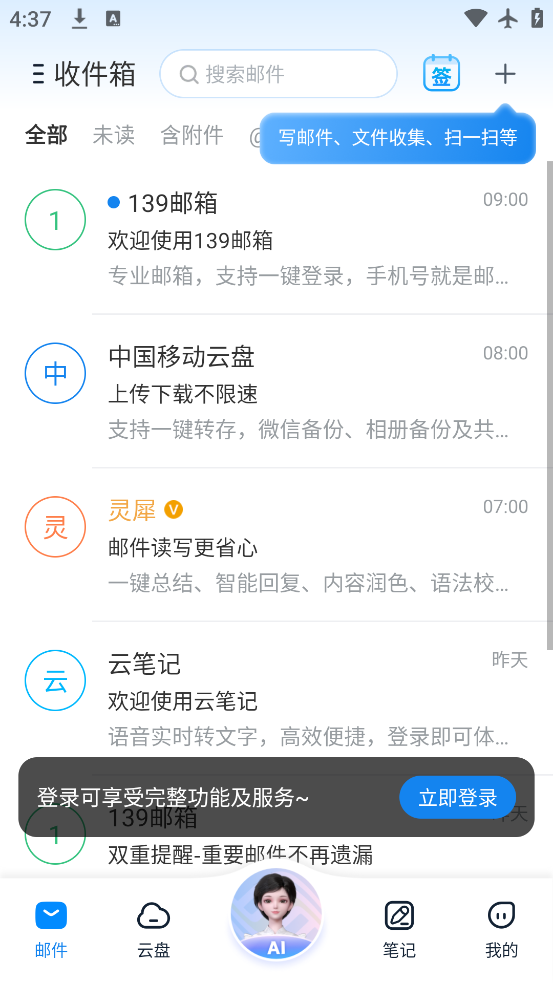 139邮箱官方免费版下载是中国移动推出的一款高效、安全、便捷的电子邮件管理工具,以手机号@139.com为专属域名,支持多平台无缝衔接,把手机当成你的邮箱,随时随地发邮件,查收邮件,在线办公,超级轻松!