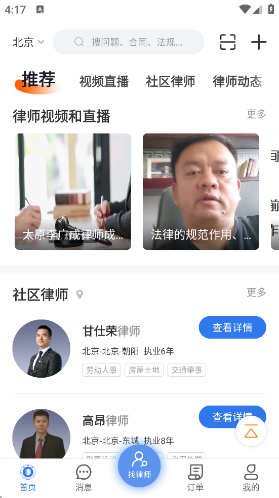 2、互动功能:提供语音呼叫、视频连线律师服务,支持直播互动与短视频学习。