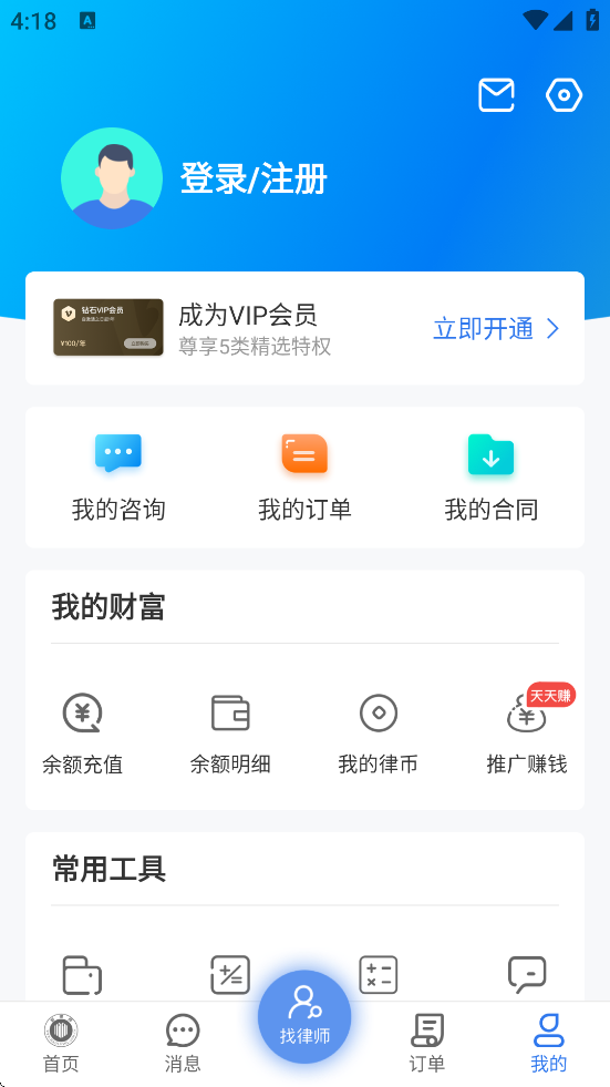 律师费计算器、快速立案、开庭提醒等辅助功能。