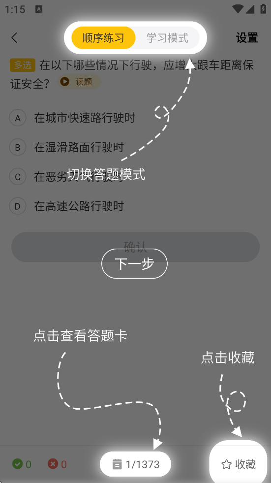 2、全科题库覆盖:提供科目一至科目四的新规题库,包含小车、客车、货车、摩托车及资格证题库,并实时更新地区题库。