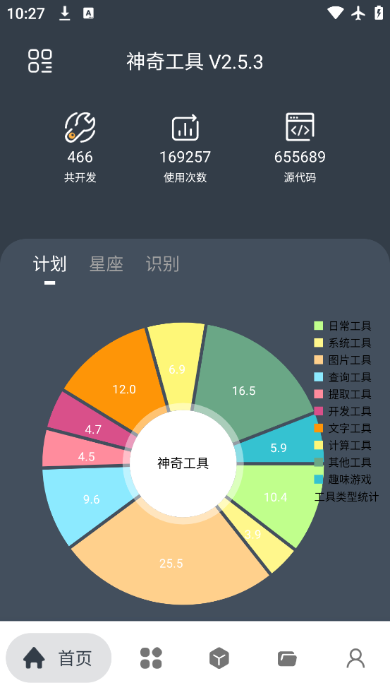 神奇工具是一款汇集超多给力的小工具神器,多种类型尽在其中,包括日常、图片、查询、文字、计算、提取、系统、开发、游戏、其他十大分类,满足用户使用需求。