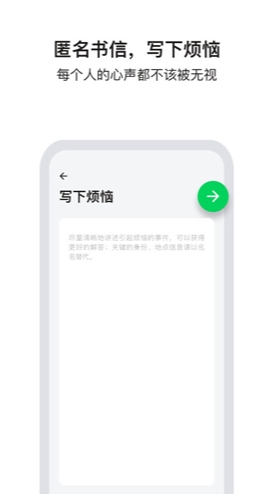2、提供匿名发布动态、心事倾诉等功能,用户可自由分享情绪,且无需添加好友即可发送私信,减少社交压力。