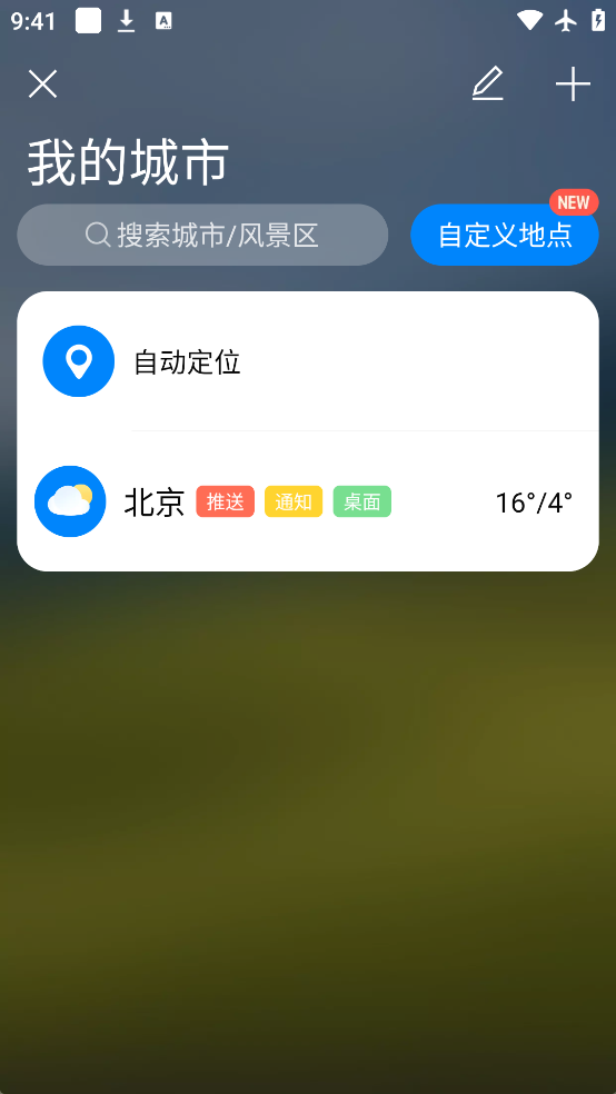 2、除了添加城市天气以外,还可添加自定义位置,准确定位至钓鱼地点、公司、学校等,定位更小天气信息更准确。